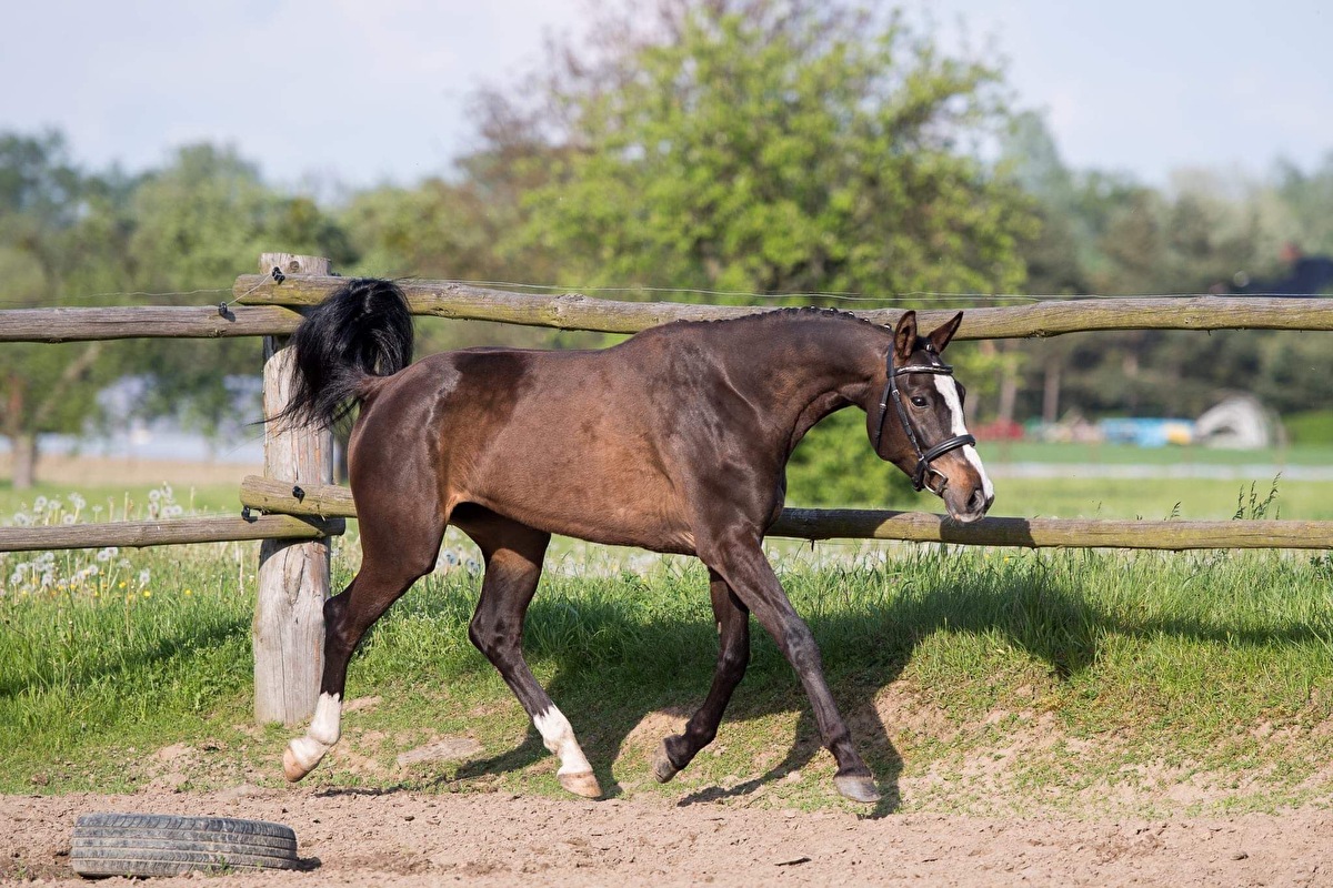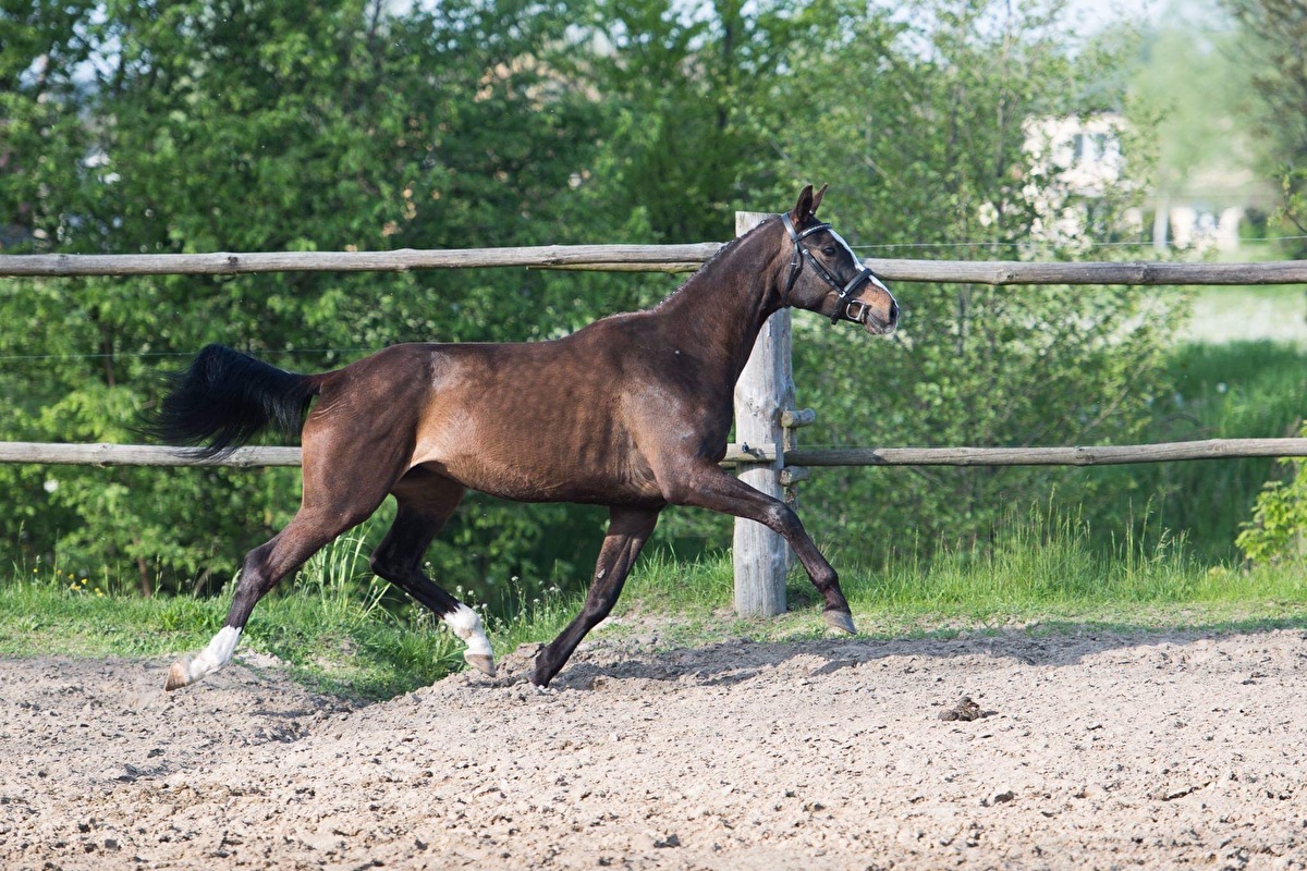 Bardzo urodziwa klacz, grupa E, 155cm wzrostu, ur. 2013r, z bardzo dobrym sportowym rodowodem. Kalandra jest koniem bardzo inteligentnym, szybko uczącym się, zawsze chętnym do współpracy. Bardzo dobry, obszerny ruch we wszystkich chodach. Bardzo wygodna i jezdna. Grzeczna i bezpieczna pod siodłem.