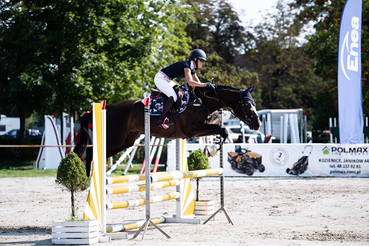 Ma bardzo dobrą technikę skoku, oraz dużą siłę odbicia. Ujeżdżona na poziomie klasy L , startuje w skokach do klasy L 1 włącznie. Pokazuje potencjał na duże konkursy. Zajeżdżona w styczniu tego roku. Chodzi na skórzanym wedzidle. Bardzo miła do jazdy, świetnie reaguje na dosiad jeźdźca. Chodzi w teren sama oraz z innymi końmi. Padokowana codziennie. Bezproblemowa w transporcie, przy kowalu oraz zabiegach pielęgnacyjnych. Zdrowa, bez narowów.